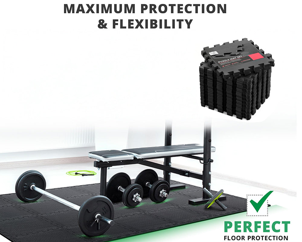 The Gym Flooring Mat is your ultimate solution for floor protection and workout comfort. This premium 18-piece interlocking mat set creates a cushioned, non-slip surface ideal for home gyms, garages, play areas, and more. Whether you're doing intense workouts or placing heavy equipment, the Gym Flooring Mat delivers the durability and safety you need.