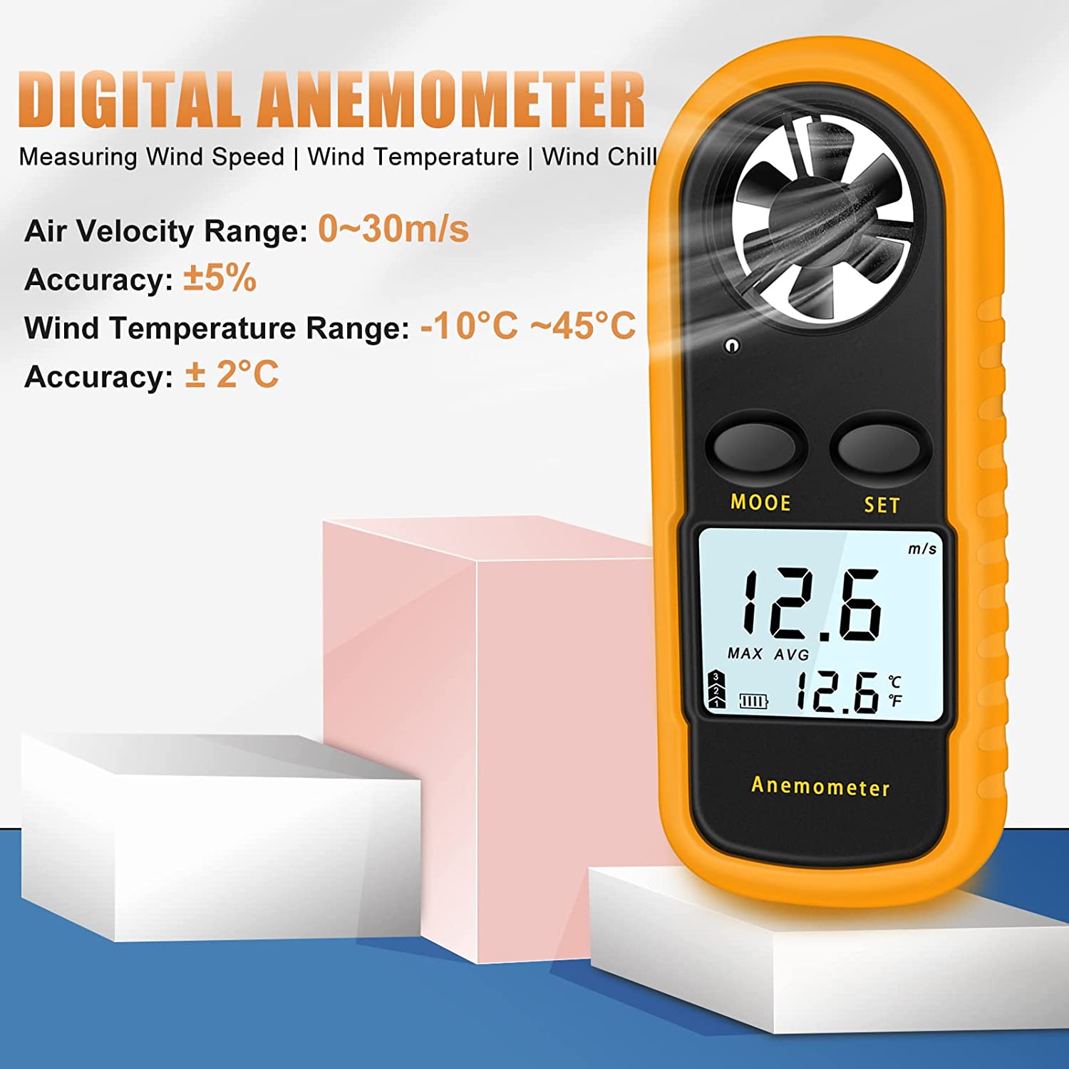 - ACCURATE DIGITAL WIND SPEED METER: Measures wind speed in the range of 0~30m/s (0~65 mph) (accuracy ±5%), wind temperature -10°C ~45°C/ 14°F ~ 113°F (± 2°C, ±3.6°F).