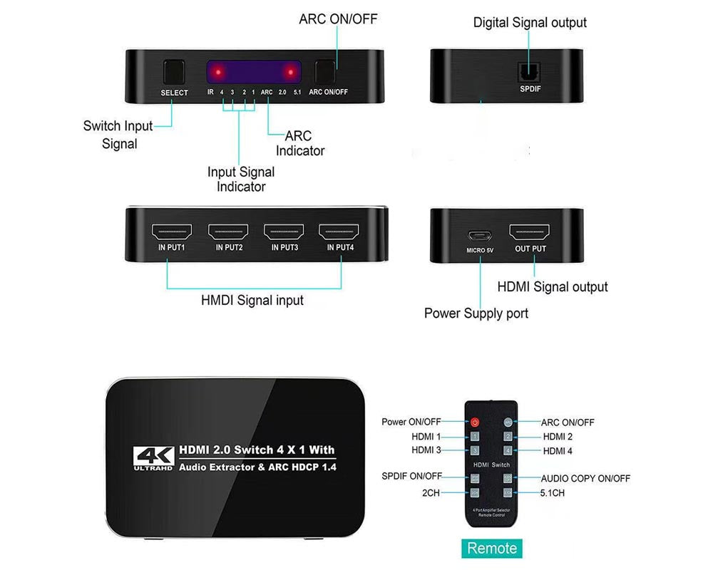 - Supports ARC (Audio Return Channel): Allows audio to be sent back from your TV to the HDMI-ARC port on the switch.