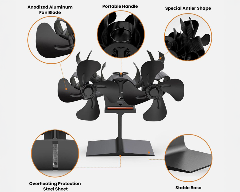 - Product Type: Dual-Head Heat Powered Stove Fan
