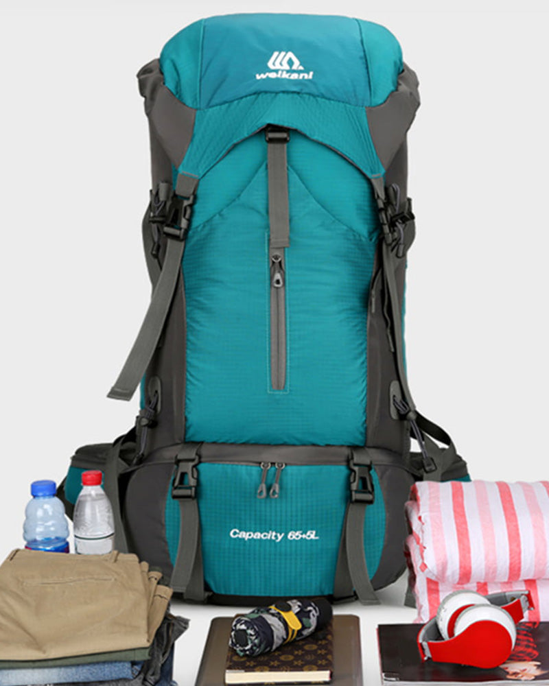 Designed for outdoor enthusiasts, this 65+5L hiking bag features multiple pockets and webbed straps, offering ample storage for all your adventure essentials. Crafted from high-quality, ripstop, and water-resistant fabric, this bag ensures long-lasting performance in challenging environments.