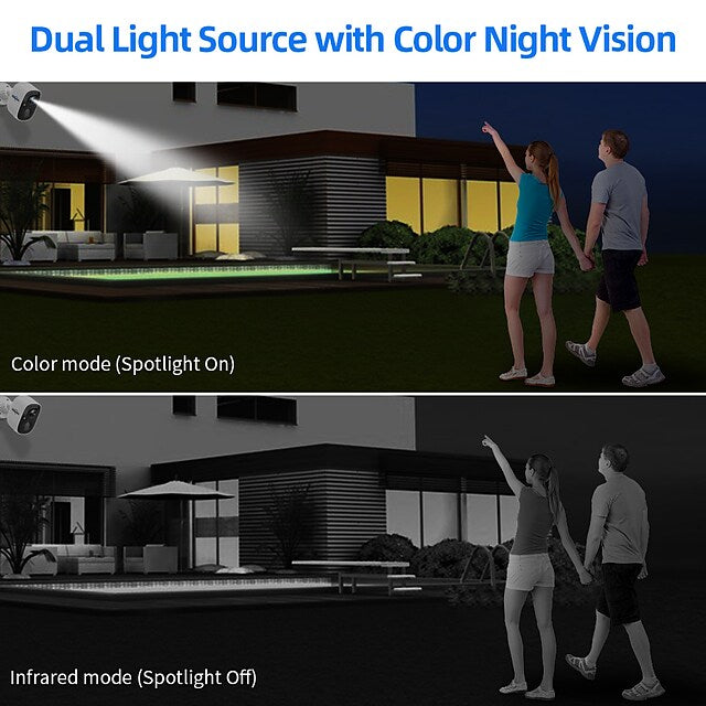 - Alarm Function: Mobile phone message notification, white light trigger alarm