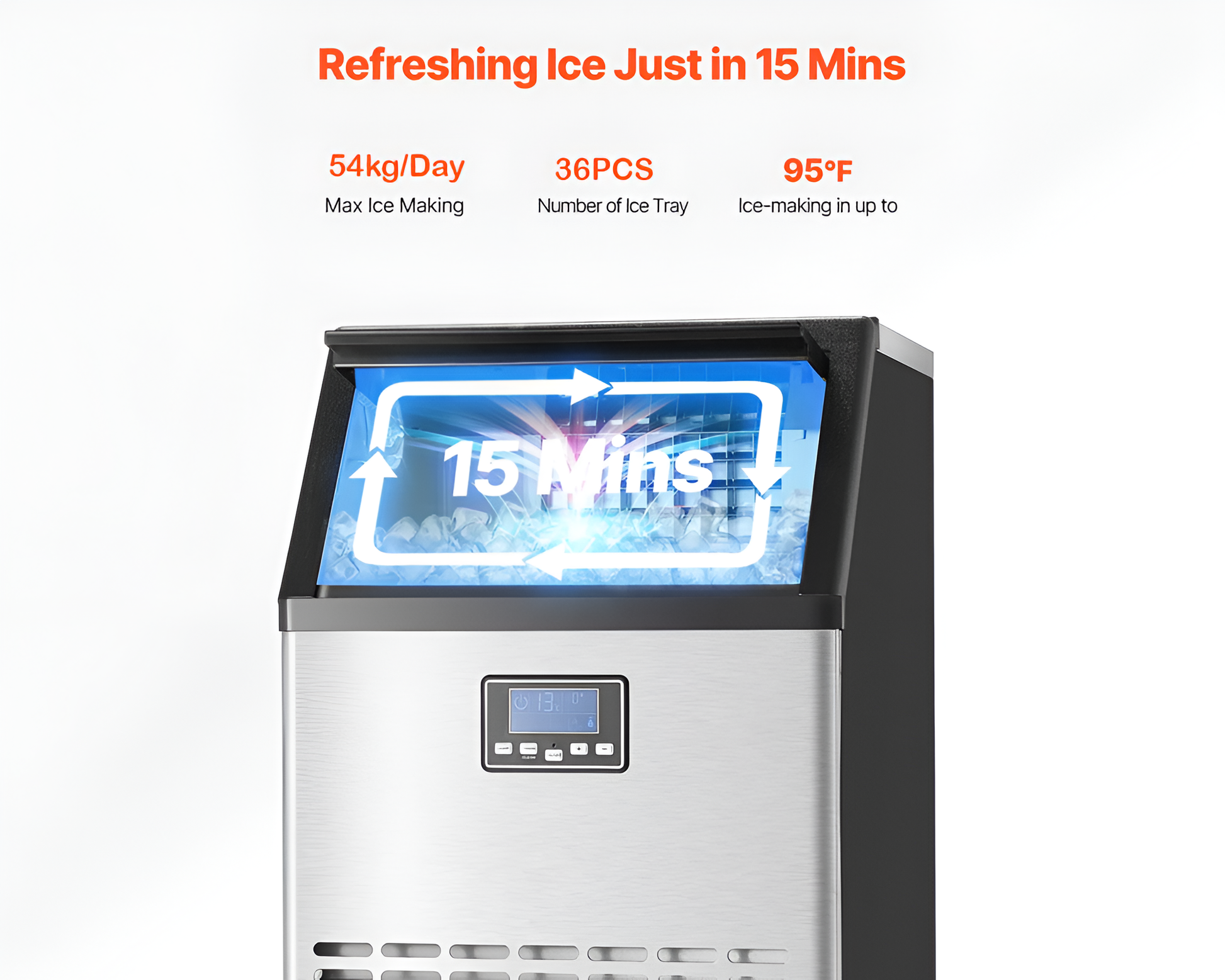 - Convenience and Efficiency: Simply plug it in, fill the tank, and start making ice—no permanent installation required.