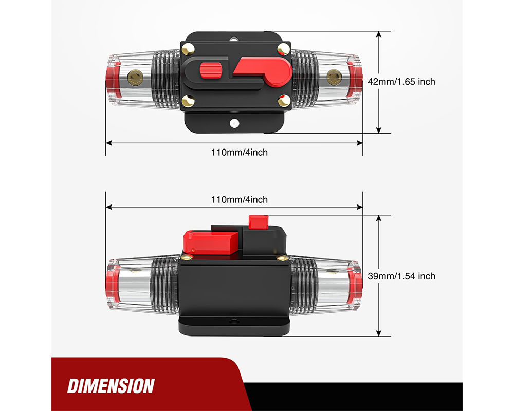 - Durable alloy housing with protective cover so the Inline Circuit Breaker withstands heat and pressure.