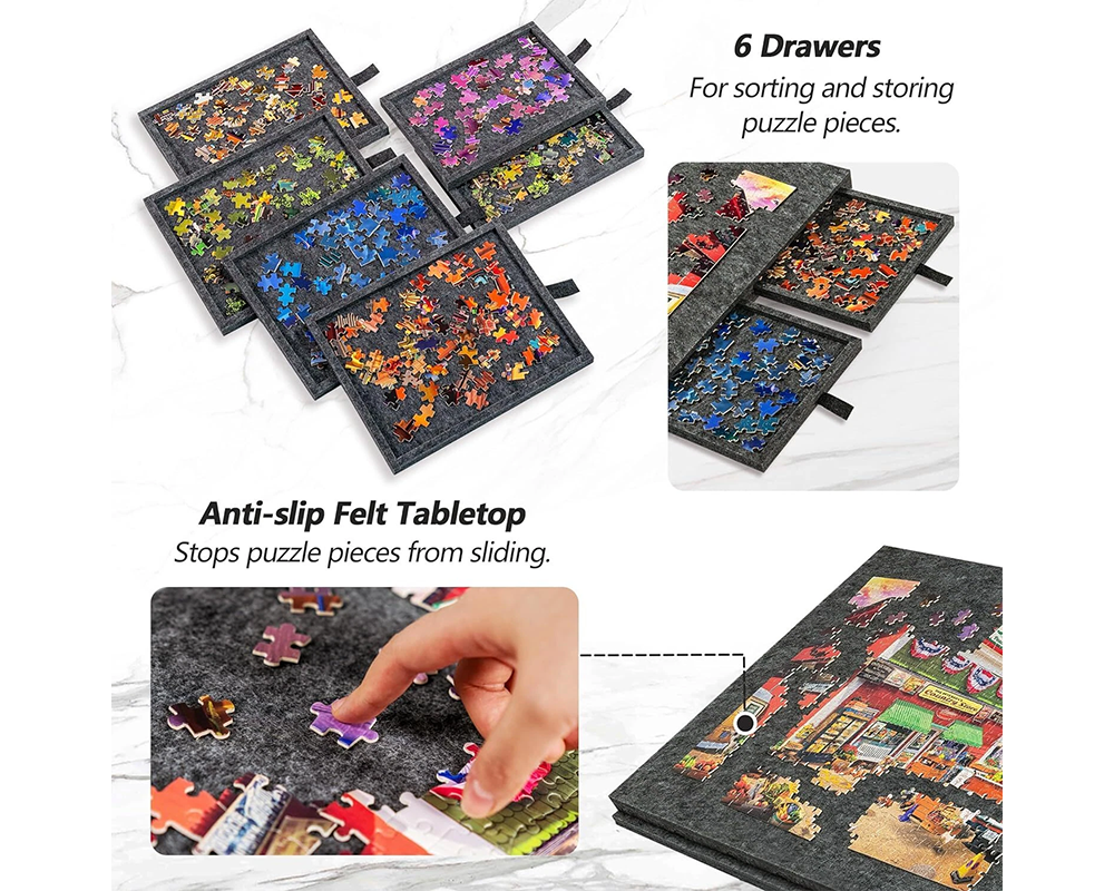 - 6 Built-in Drawers: Store and sort Jigsaw puzzles pieces by color or shape while keeping everything tidy.
