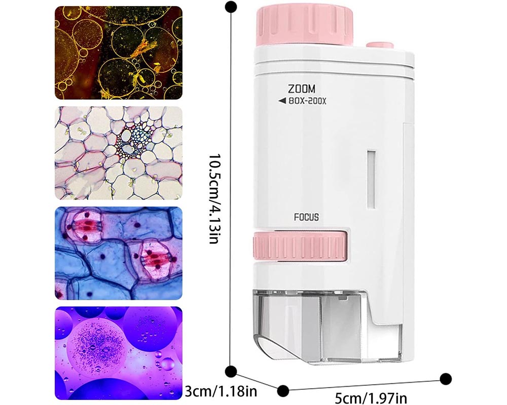 60-200x Zoom Kids Portable Microscope with LED Light – Educational Toy for Kids (Pink)