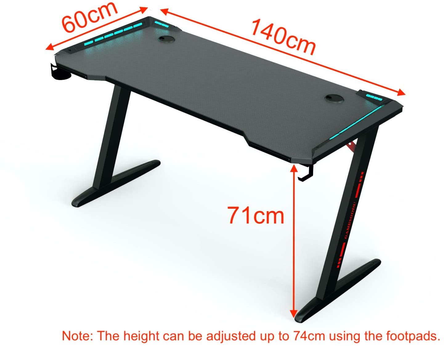 Office Gaming Table PC Computer Laptop Desk for Gamer Pro Z Shaped with LED Lights