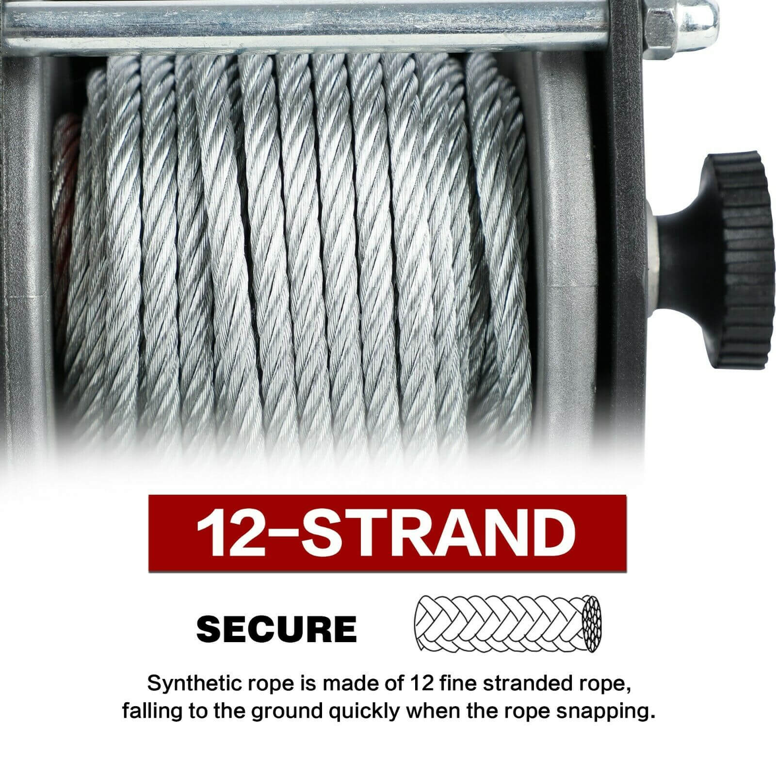 The winch is designed for durability, featuring a waterproof IP67 rating and a corrosion-resistant powder-coated surface. It can withstand extreme weather conditions, ensuring reliable performance in challenging environments. Additionally, it comes equipped with a sturdy 3/16-inch x 32 feet synthetic winch rope with high tensile strength, capable of handling various outdoor towing jobs with ease.