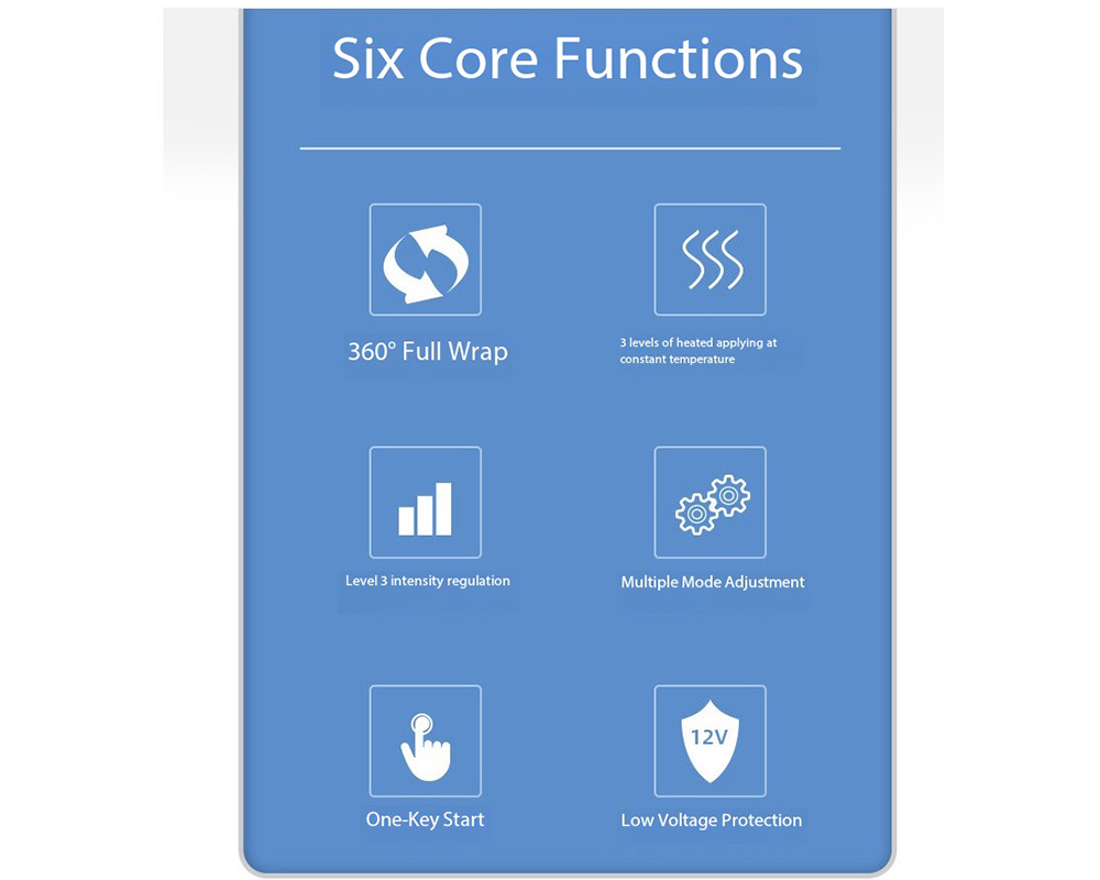 - Heating Therapy: Two adjustable heat levels enhance circulation and relax muscles.