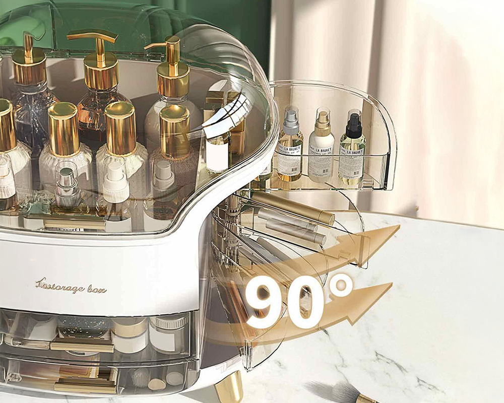- Rotatable Drawers: 90° rotatable design provides quick and easy access to all cosmetics.