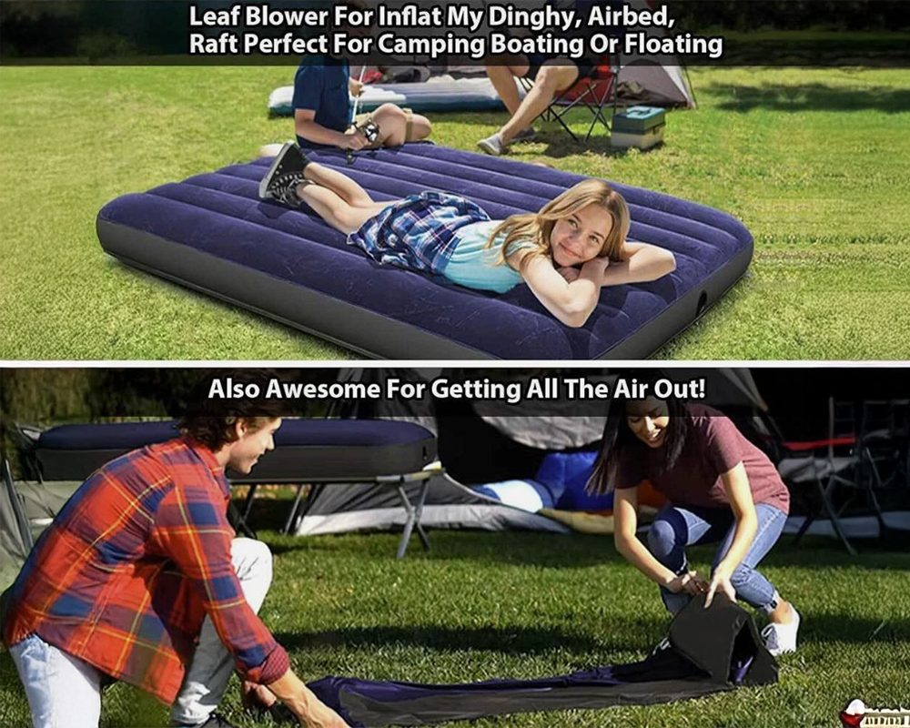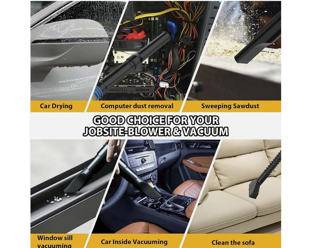 - 2-in-1 Blower & Vacuum: Switch easily between blowing, vacuuming, and inflating.