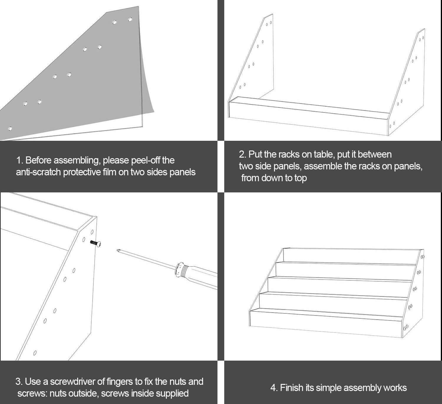 Note: Please peel off the protective film on the stands before installation to reveal the clear acrylic finish.