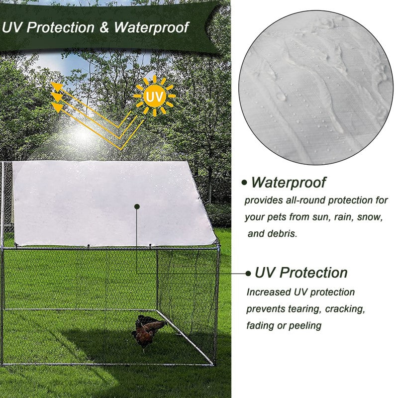 - Waterproof and UV-Resistant Roof Cover: Includes a 210D silver-coated PE cover to shield your chickens from rain, snow, and harsh UV rays. The sloped roof design prevents water build-up and debris accumulation.