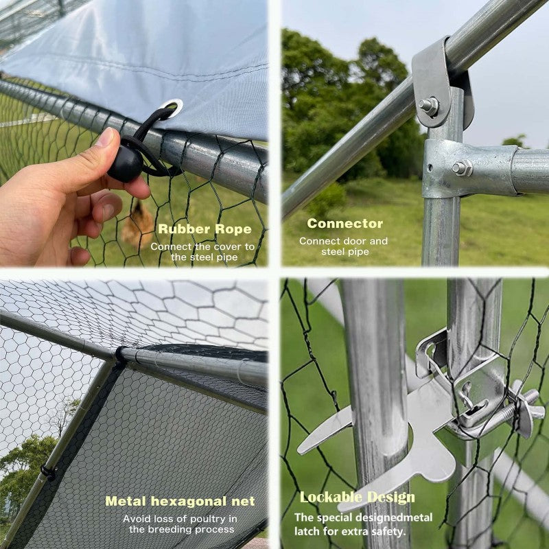 - Anti-Rust and Durable Structure: Made with galvanised steel round pipes, this Large Metal Chicken Coop is built for long-lasting outdoor use. The solid frame offers a stable and secure environment for your chickens to roam freely.