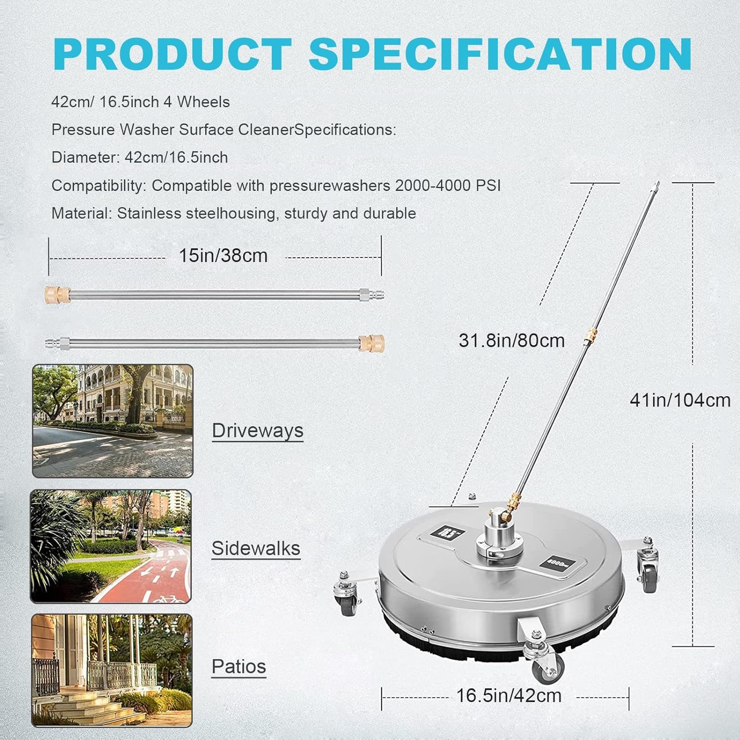 - 16.5''/18''/20'' pressure washer surface cleaner provides multiple sizes of Surface Cleaner commercial grade cleaning Surface Cleaner areas.