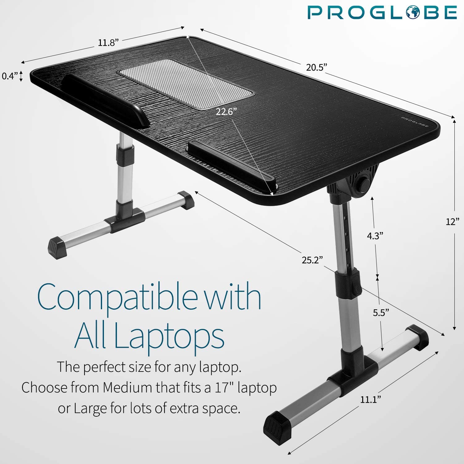Proglobe Lapdesk with Fans, Laptop Stand with Adjustable Height, Bed TV Tray, Foldable & Portable Computer Table, Work from Home Accessories (20X12)