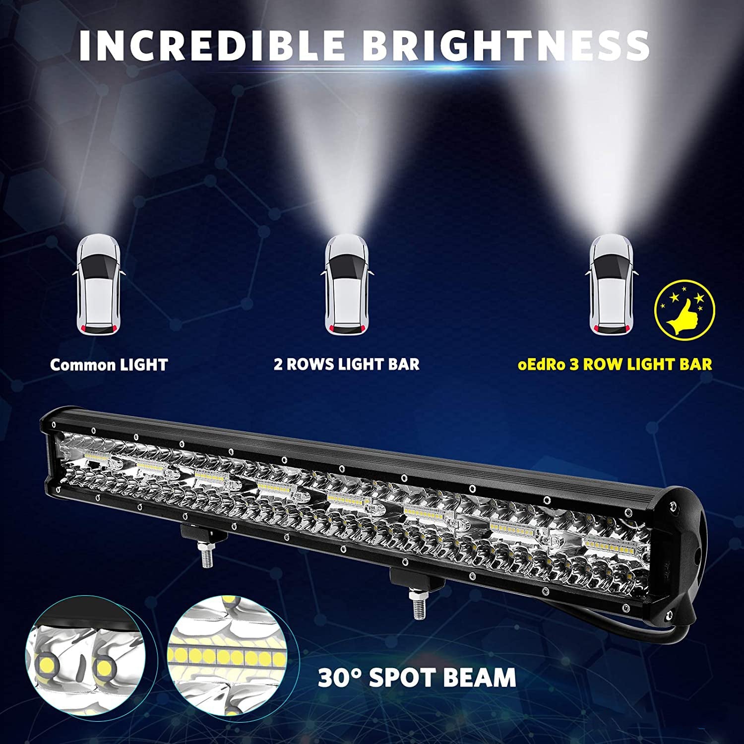 - Super Bright Spot Beam: Tri-row 23-inch LED light bar designed with premium quality LED chips that produce a powerful spot and flood combo beam for extended irradiation distance.