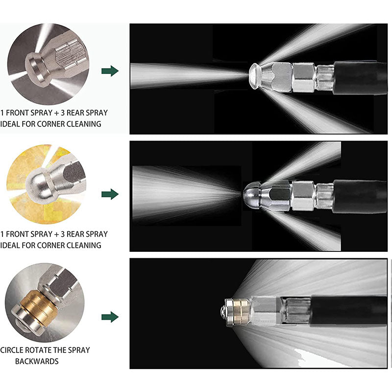 15M Sewer Jetting Kit for Pressure Washer, 5800PSI 1/4" NPT Drain Cleaner Hose, Corner, Swivel and Push Button Sewer Nozzle with Wrench, Waterproof Tape, Pearl Corsage PinSewer Jetter Kit for Pressure Washer 50FT, Newest 5800PSI Drain Cleaner Hose 1/4 Inch NPT Corner, Rotating and Button Nose Sewer Jetting Nozzle Pearl Corsage Pin Waterproof Tape