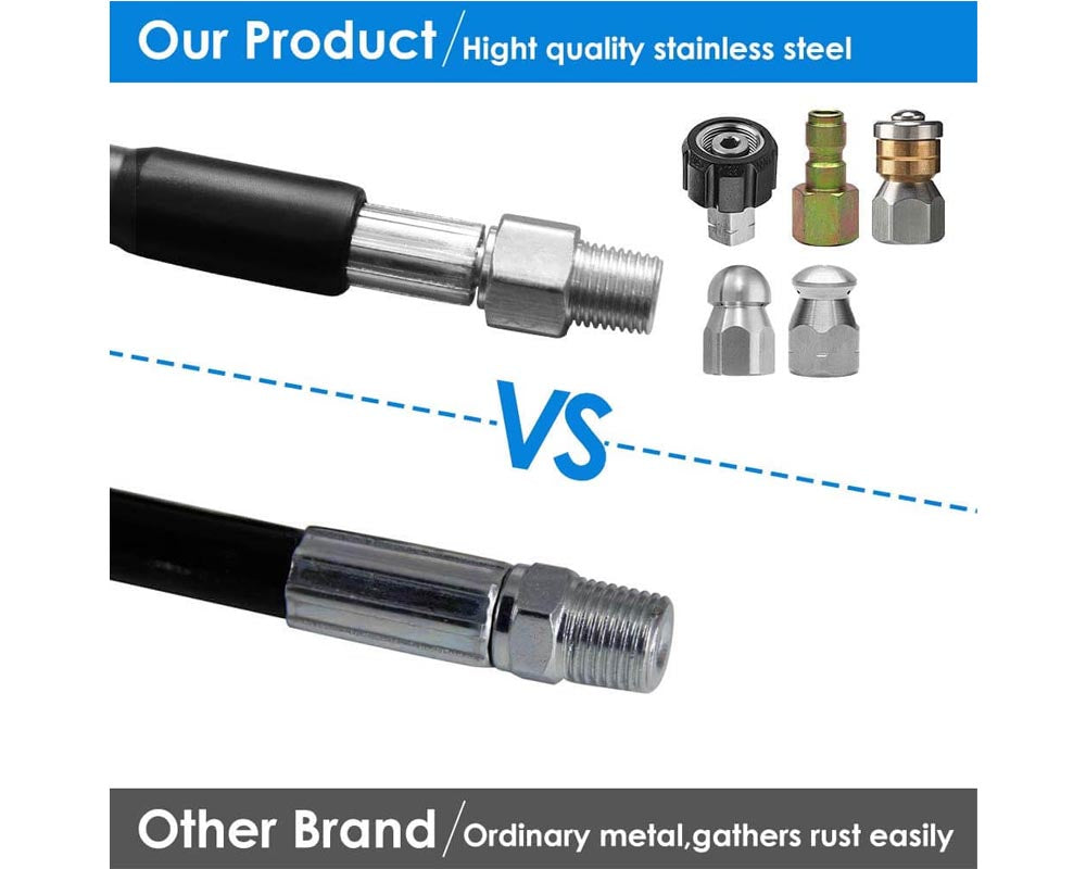 No Chemicals Required: The sewer jetting hose cleans blockages with powerful water pressure, eliminating the need for special chemical cleaners.