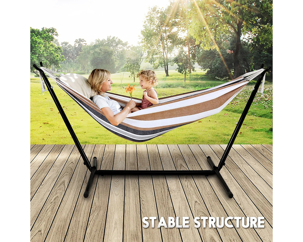 2-Person Hammock with 9FT Steel Stand - Weather Resistant Double Hammock Bed and Stand with Carrying Case, 450LBS Capacity, 6 Optional Hook Positions (Tan Stripe)