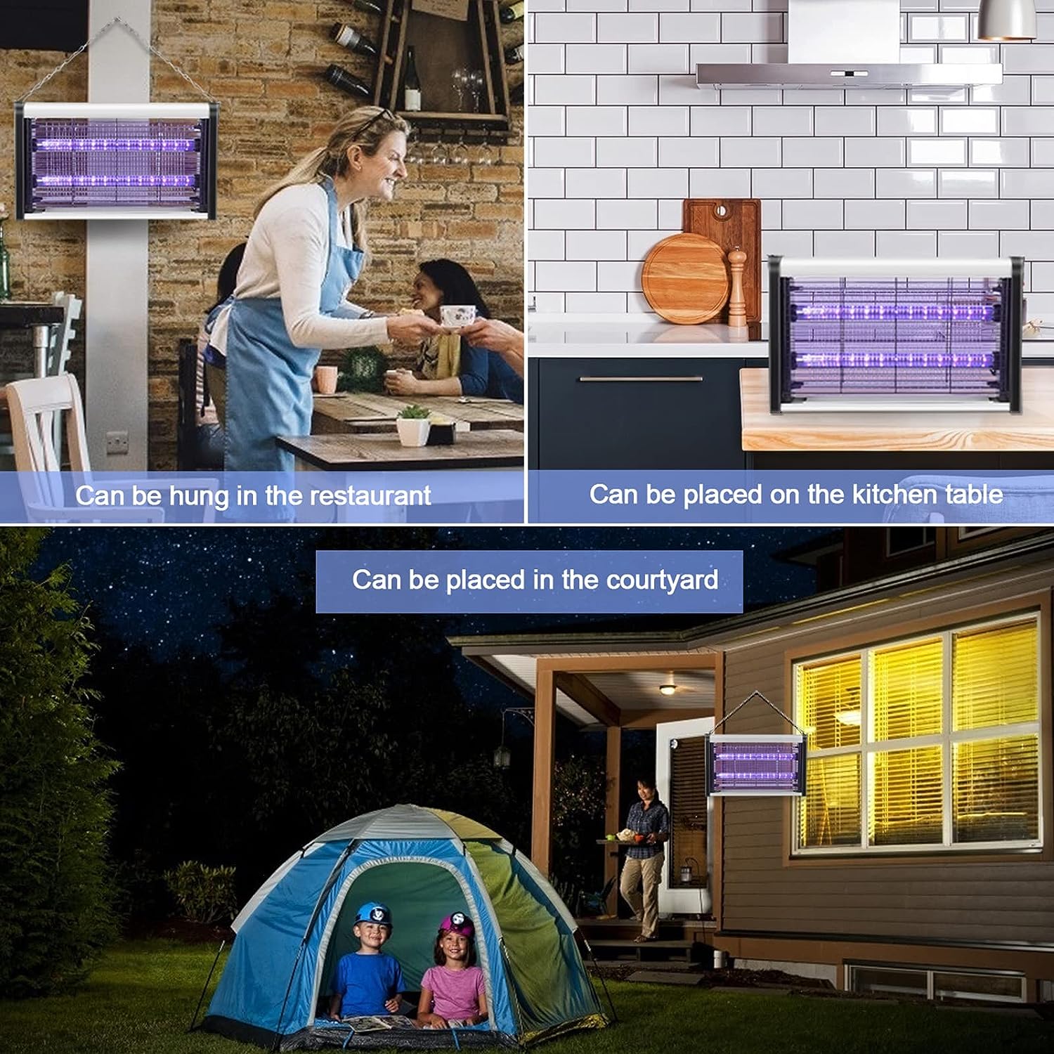 Mount the electric insect killer on the wall, place it on a stand, or hang it from the ceiling, giving you flexibility in how you use the device. Whether at home or in a business, the mosquito fly killer can be easily adjusted to fit your space.