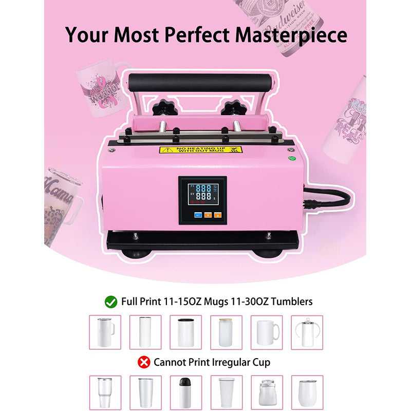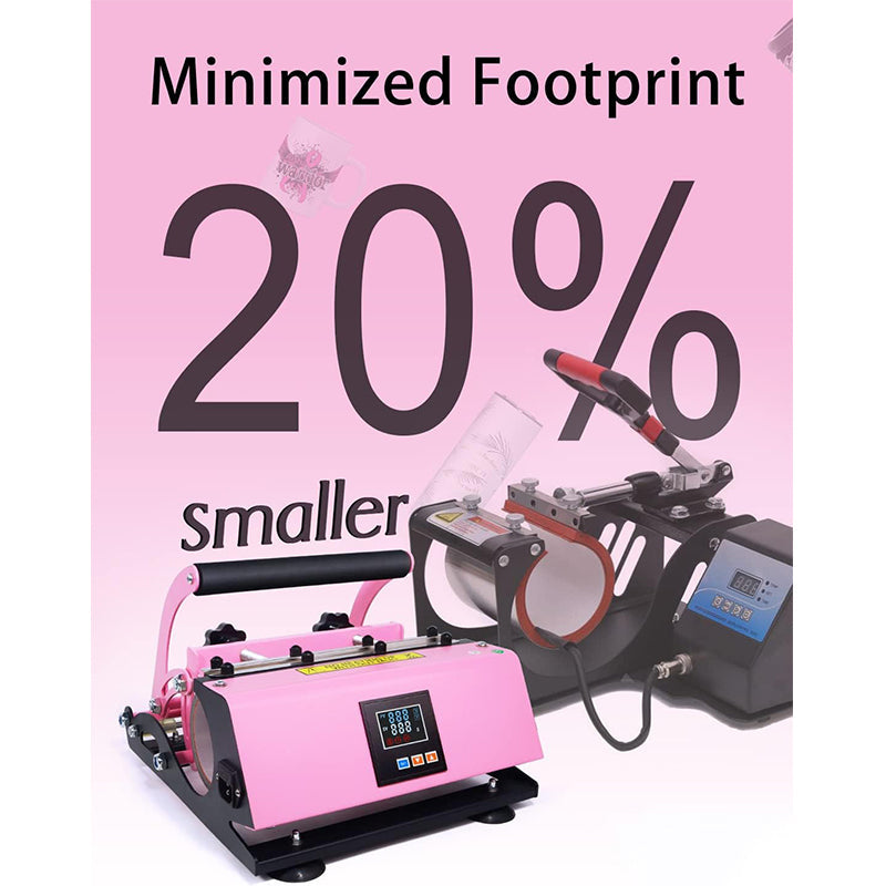 Minimized Footprint: Streamline your workspace with our integrated heat press machine, eliminating the need for an external control box. This design innovation reduces the machine's size by 20% compared to traditional models. Easily replace the heat element attachment and simultaneously sublimate two 11OZ - 15OZ mugs, optimizing your efficiency.