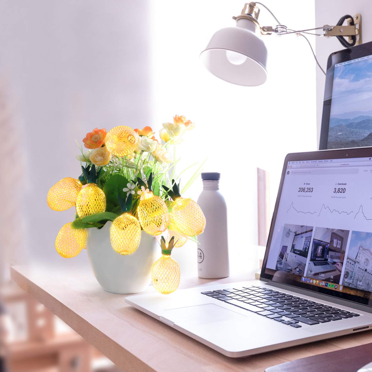 The lights feature a gold-plated metal pineapple design, making them visually appealing and perfect for a fun and vibrant decor. The high-quality LEDs ensure a bright, warm glow, while the durable metal mesh prevents deformation and rust, ensuring long-lasting beauty.