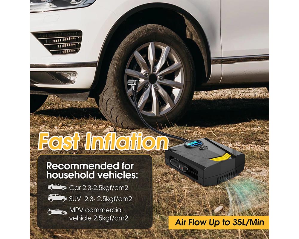 This Portable Tire Inflator is a must-have for anyone who needs a reliable and efficient tool for inflating tires, Tire Inflator, Portable Air Compressor for Car for sports equipment, or other inflatables. Its compact, powerful, and easy-to-use design makes it perfect for use at home or on the go.