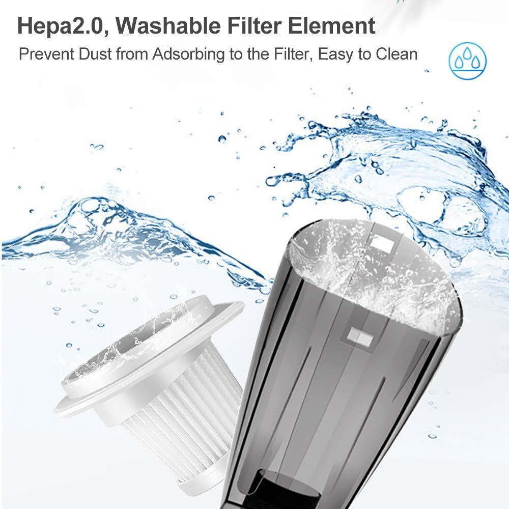 The vacuum features a premium HEPA filter that can be removed, cleaned, and reused for long-lasting performance. Ensure it’s completely dry before reinserting for optimal results.