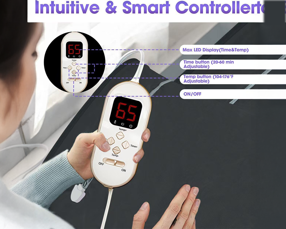 - Adjustable Temperature: Heat ranges from 104F – 176F, perfect for sensitive skin while using this infrared sauna blanket for detox and portable home sauna sessions.