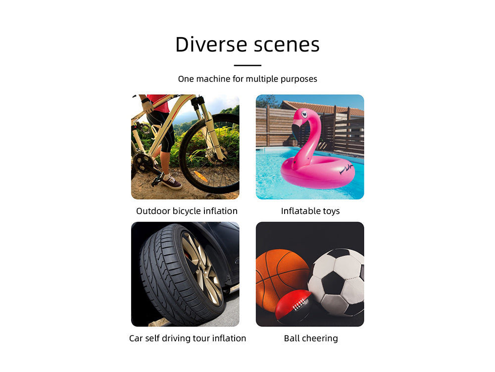 - 150PSI Multi-Purpose Air Pump -- Maximum pressure of 150PSI with 4 different adapters ensure you can easily inflate all your motorcycles, bicycles, strollers, road bike, scooter, wheelchair, moped, volleyball, , swimming rings, children's toys ball, and Other Inflatables.