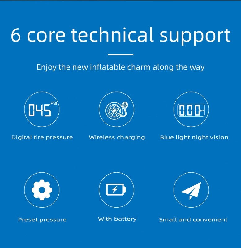 - 3 Color LED Light -- Portable air compressor with LED light which with Red, Blue and White color for choose, and with SOS mode, which is a great tool for outdoor camping or riding.