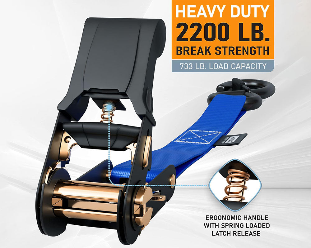 - Heavy-Duty Strength: Supports up to 2,200 lbs break strength with a 733 lbs working load capacity per strap, ensuring your cargo is safely secured.