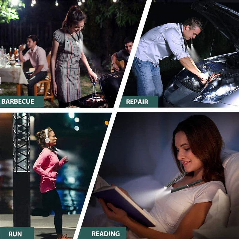- Novelty Book Light Flexible Handsfree LED Neck Lights Hug Reading Lamp Portable USB Charging Flashlight for Knitting Camping Repairing Lighting.