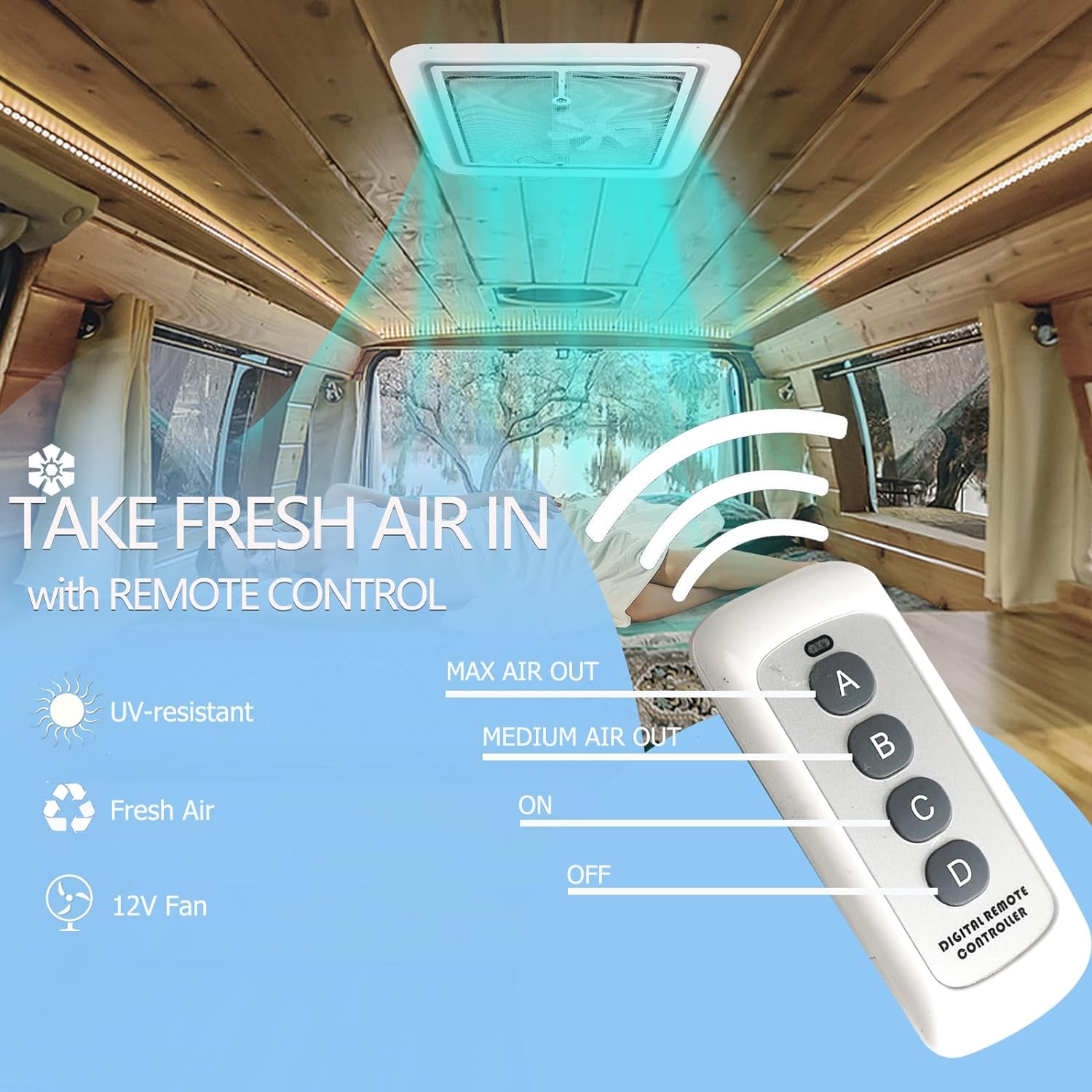 The ideal solution for enhancing ventilation in your RV, camper, motorhome, or trailer. This roof vent fan is designed to offer optimal air circulation with the convenience of remote control operation, providing a Roof Vent breath of fresh air while Roof Vent efficiently expelling unwanted Roof Vent odors and maintaining a comfortable indoor environment.
