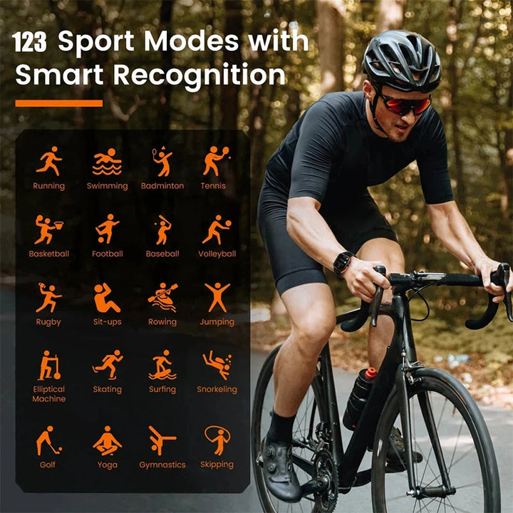 - 123 sports modes with real-time heart rate monitoring.