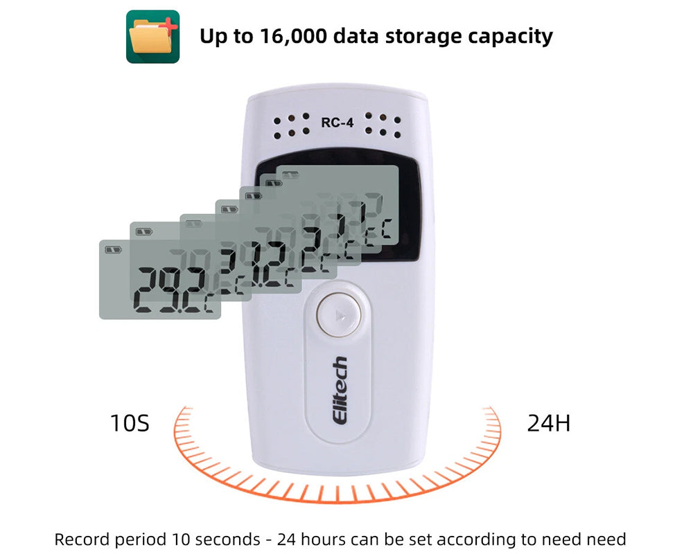 - Recording Interval: 10 seconds to 24 hours (adjustable)