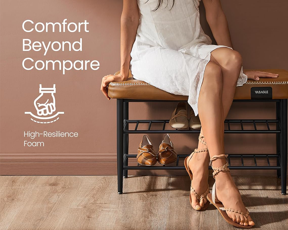 SEO Keywords & Synonyms: Shoe Bench, Shoe Rack, Storage Rack, Entryway Shoe Bench, PU Leather Shoe Rack, Three-Tier Storage Rack, Hallway Storage Bench, Bedroom Shoe Rack, VASAGLE Shoe Bench, Entryway Storage Rack.