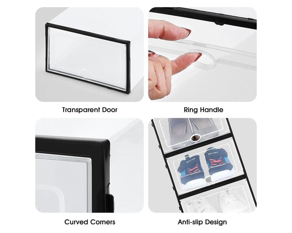 - Multi-Purpose Use: Use this shoe storage box set as a stackable shoe organizer in bedrooms, closets, entryways, garages, or as a storage solution for clothes, toys, and other small items.