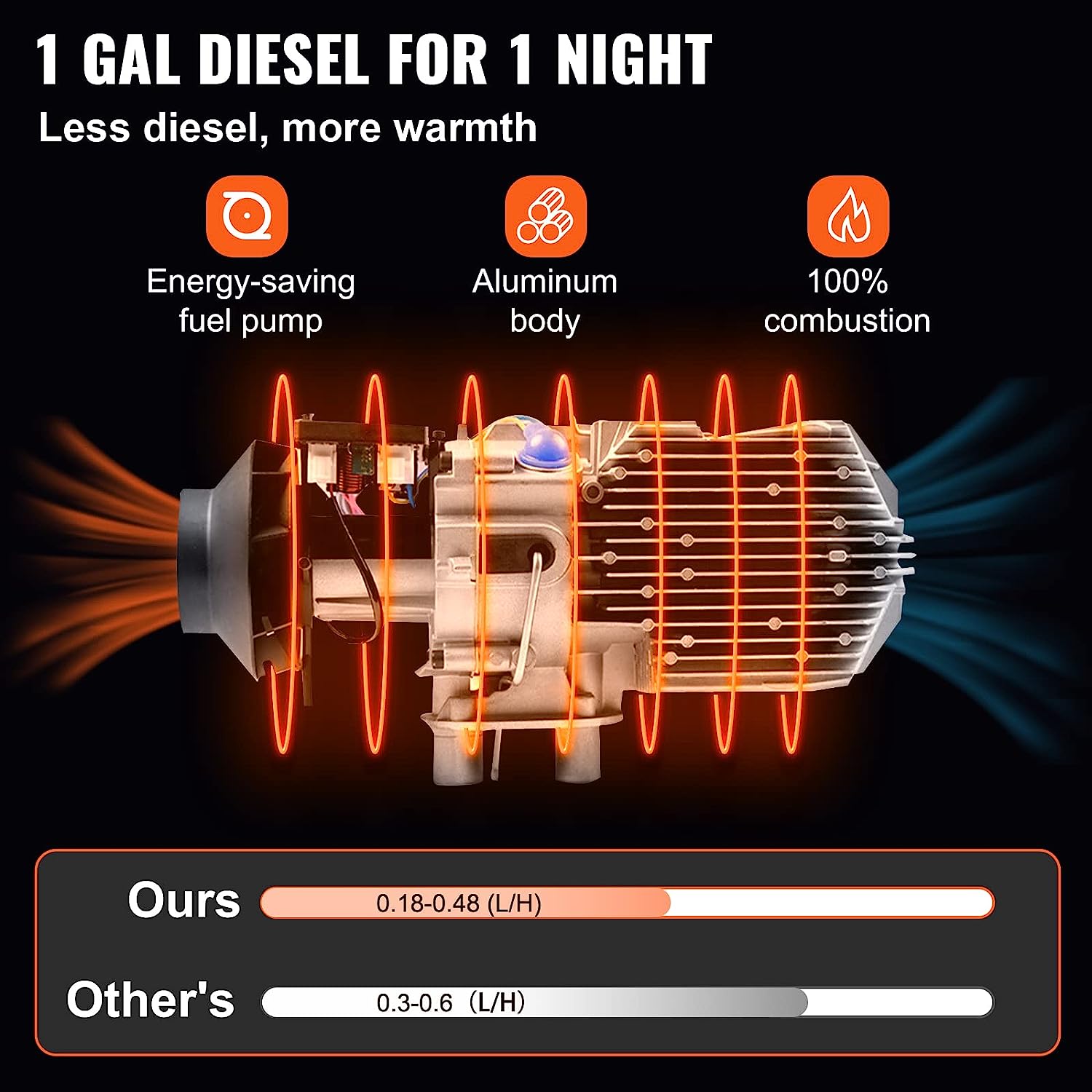 Fuel-Efficient: With a fuel consumption rate of 0.18-0.48 L/h, this diesel heater provides efficient heating while keeping fuel usage to a minimum.