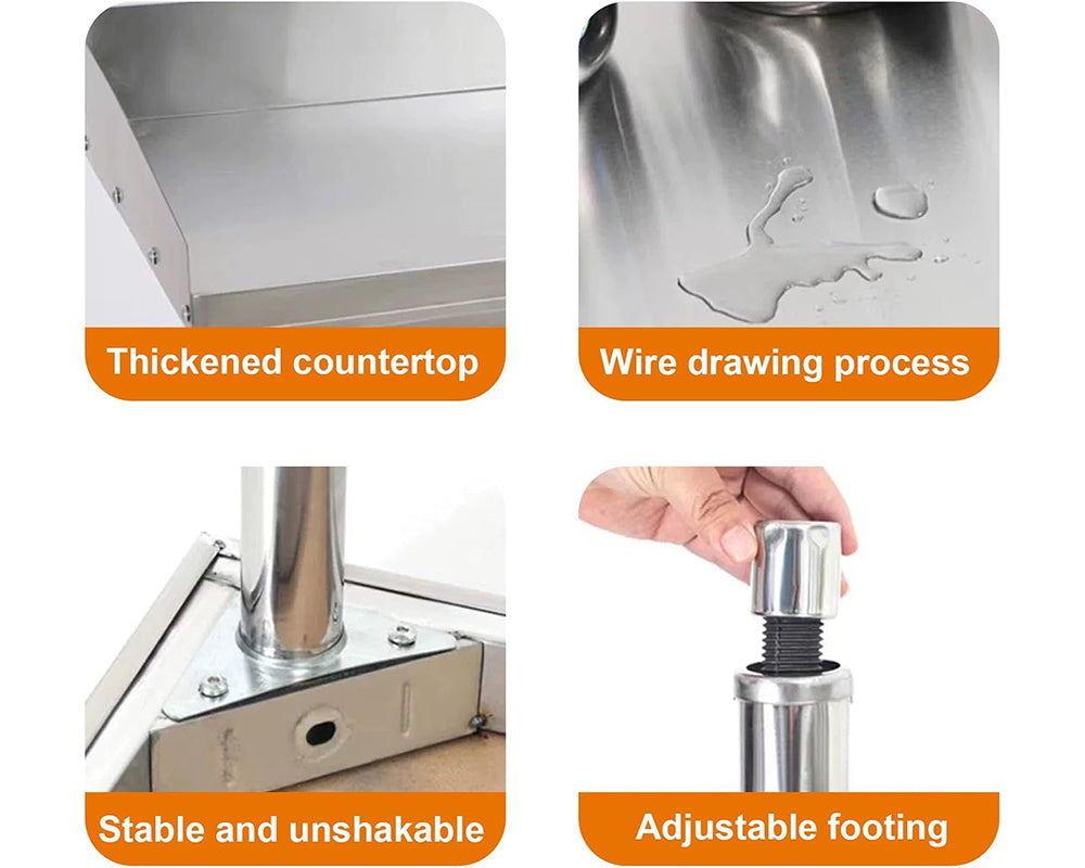 Upgrade your workspace with this high-quality Stainless Steel Workbench, designed for home, restaurant, and commercial use. Built for strength and stability, this workbench provides a sturdy surface for food preparation, cooking, and other professional tasks. Its durable, anti-stain stainless steel material ensures long-lasting performance in any environment.