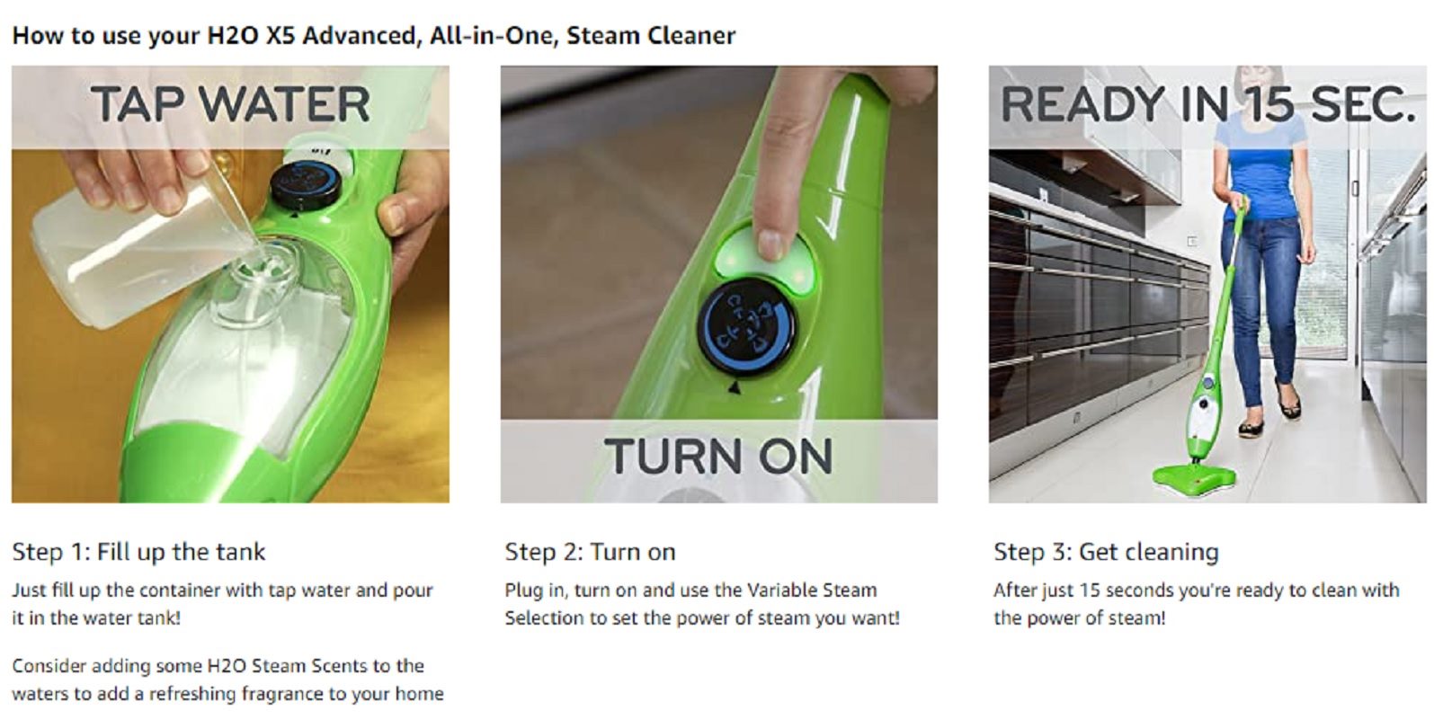 Chemical-Free Cleaning: The H2O X5 Steam Mop provides the easiest and most effective way to hygienically clean your home without using cleaning chemicals. Say goodbye to toxic cleaners and hello to natural steam power.