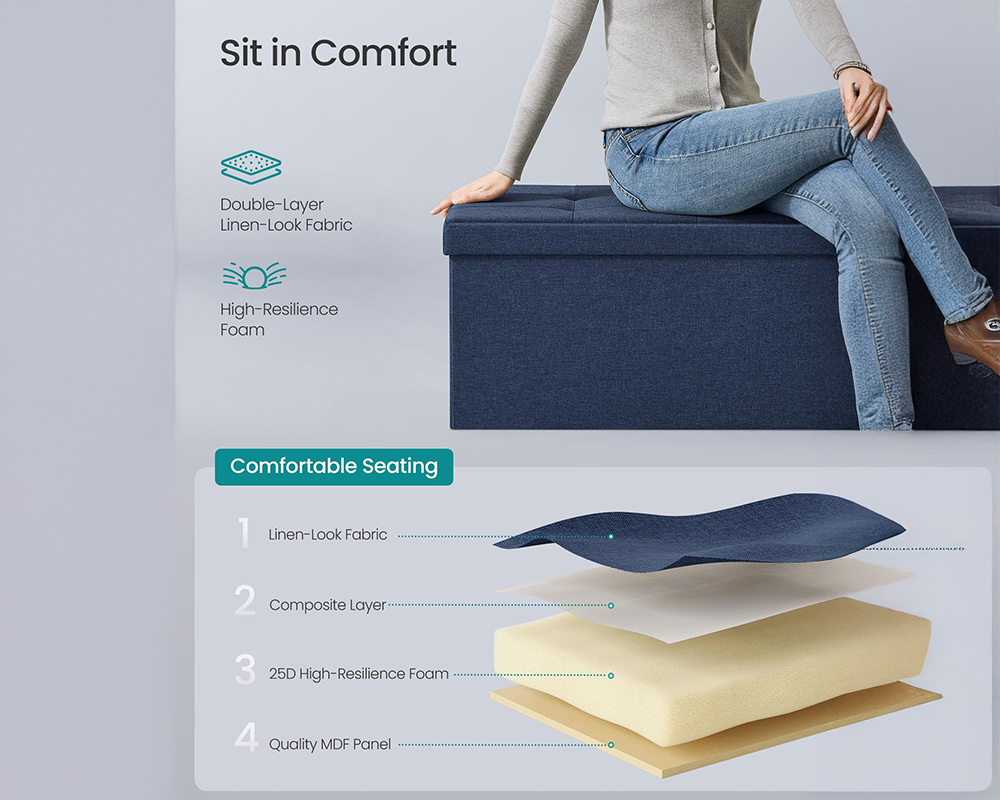- Comfort-First Seat: High-resilience foam padding provides long-lasting comfort whether used as a footstool, extra seat, or bedside bench.
