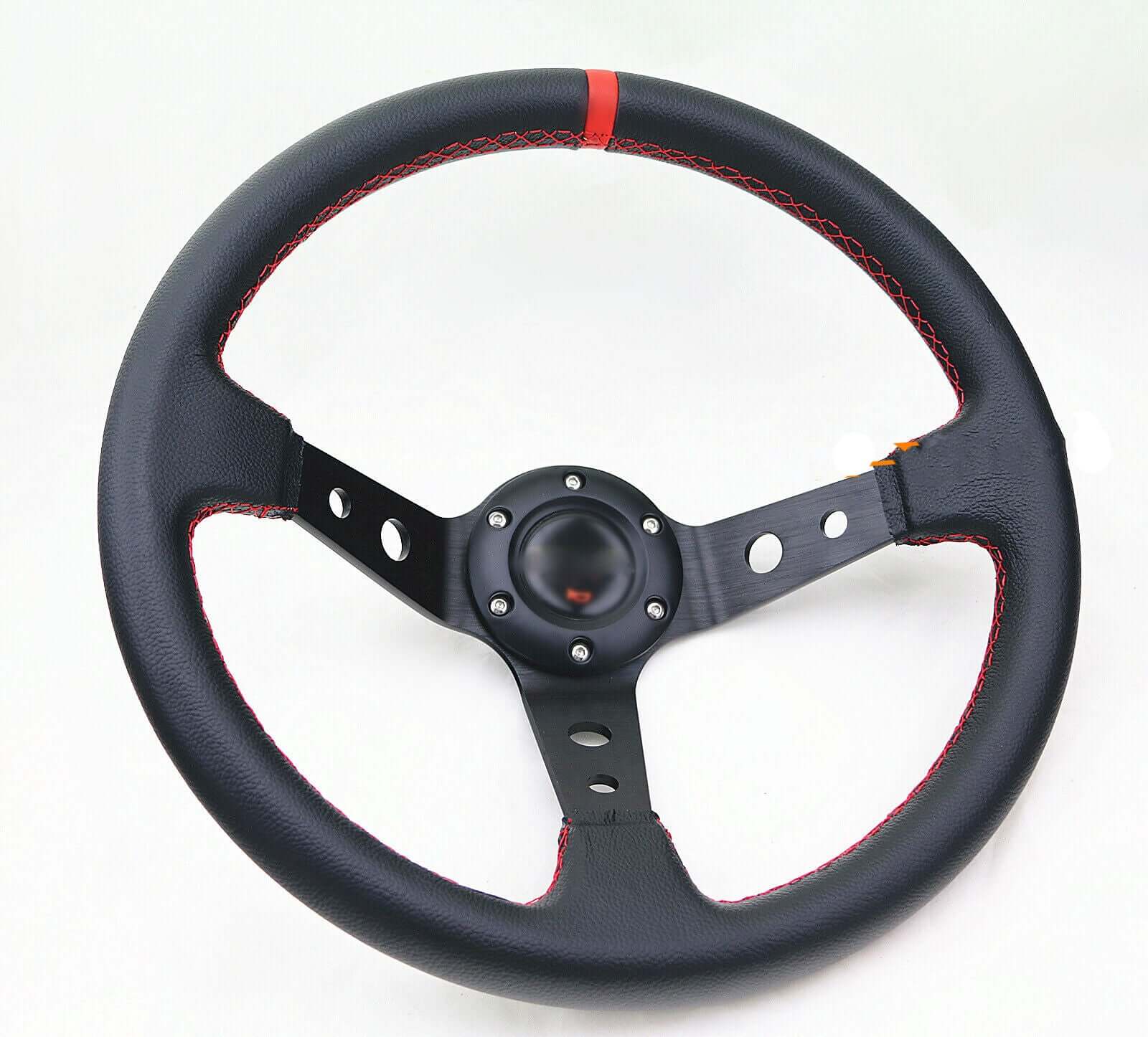 350MM Deep Dish Drifting Stitching Steering Wheel Leather Wrapped