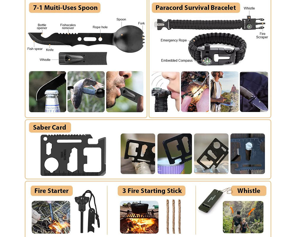 - Ideal for Outdoor & Disaster Preparedness: This Survival Kit is perfect for camping, hiking, car travel, Emergency Survival Kit Set earthquakes, and other emergencies.