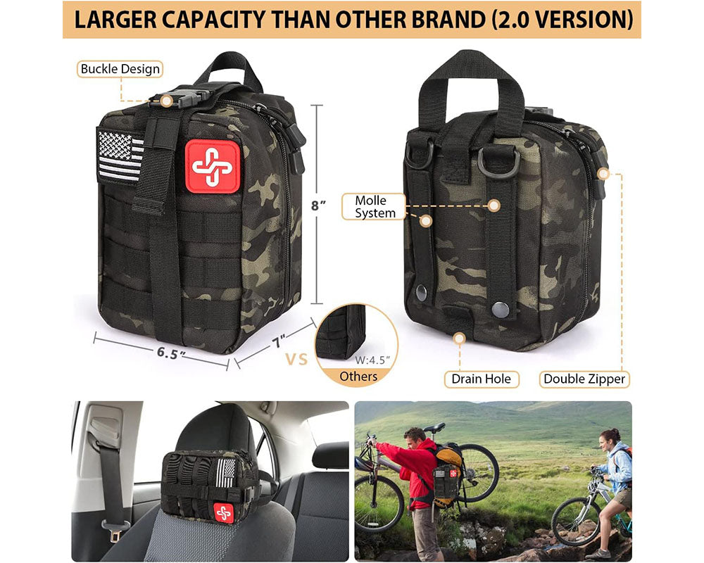 - Upgraded Molle System Survival Kit Bag: Made of military-grade 1000D nylon, water-resistant, and Emergency Survival Kit Set compatible with backpacks, combat vests, and belts.