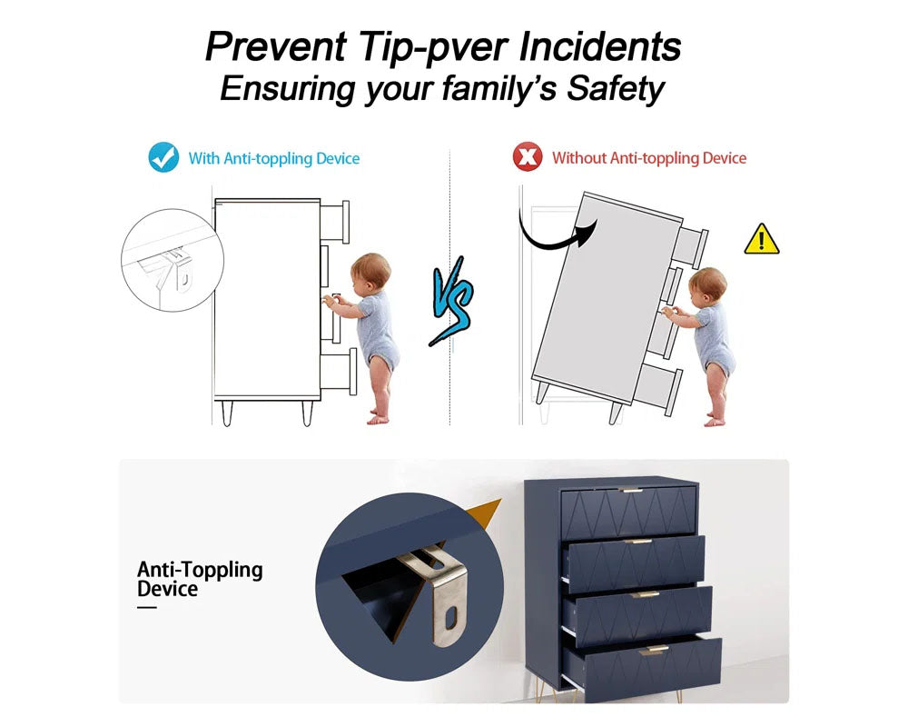 - Safe & Versatile: Compact vertical design fits bedrooms, closets, and hallways. Anti-tip hardware ensures the CURA 4-Drawer Dresser is safe for homes with children.