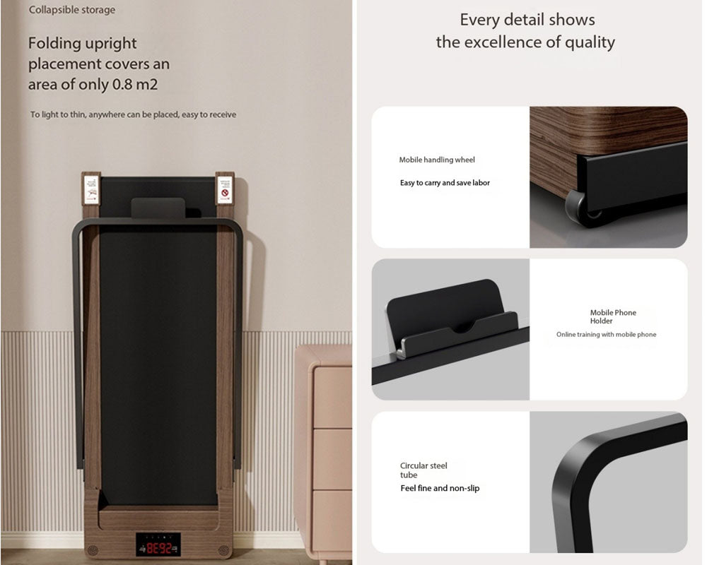- Foldable & Space-Saving: Easily store this compact treadmill with portable wheels for effortless movement.