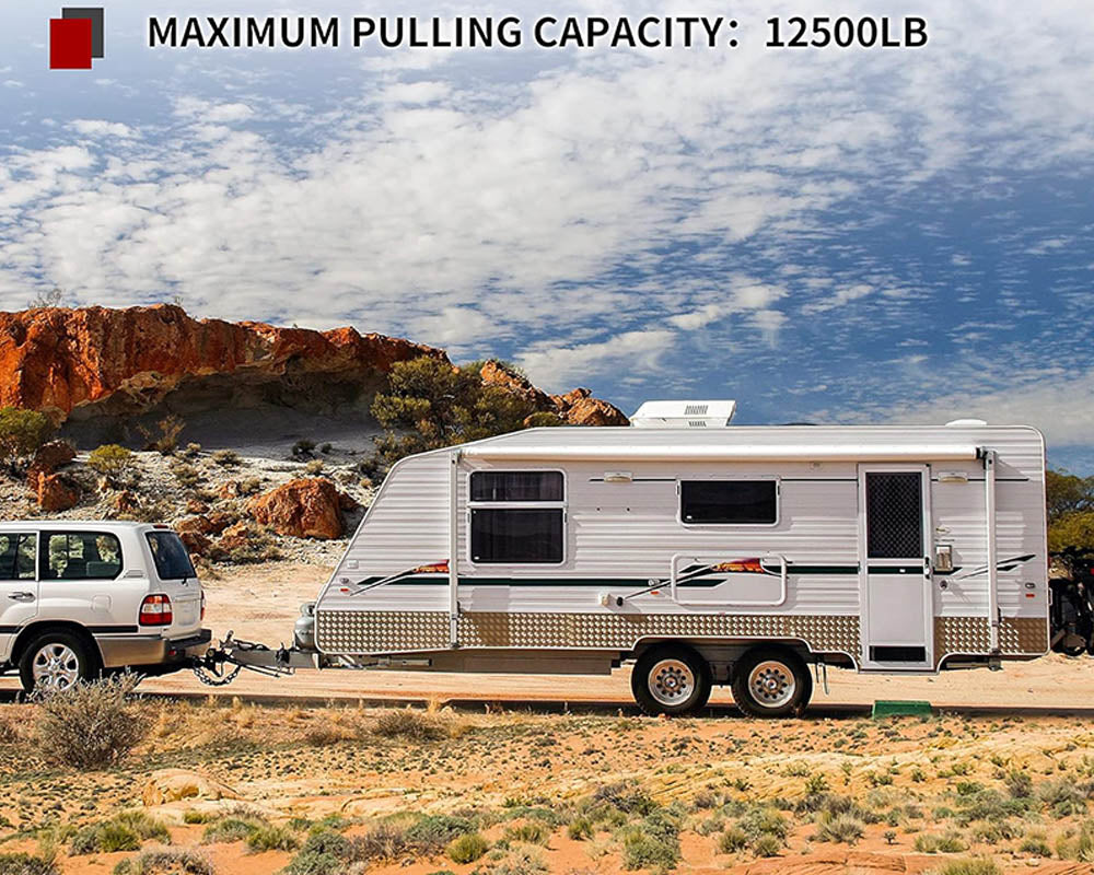 The adjustable trailer hitch features an innovative integrated dual ball head design. This eliminates the need for a separate ball mount, ensuring the balls won’t fall off during towing. The dual balls—2 inches and 2-5/16 inches—are designed for heavy-duty towing, with towing capacities of up to 4,536 kg (10,000 lbs) for the 2-5/16-inch ball and 3,175 kg (7,000 lbs) for the 2-inch ball, making it a reliable choice for RV towing and heavy hauling jobs.