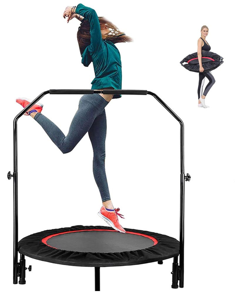 Mini Trampoline Bouncers for Adults - 40 Inch Foldable Fitness Trampoline with Removable Bar, Max Load 270 lbs - Black